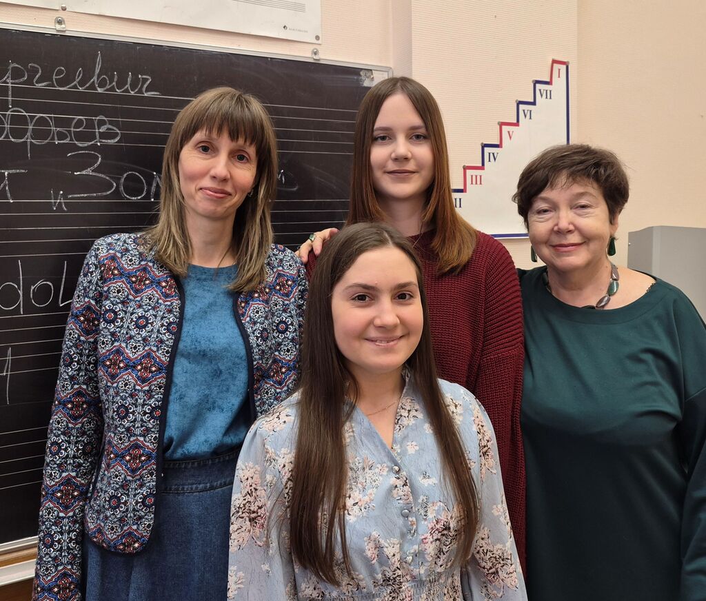 На встрече была Полина Ментий и Ярослава Венедиктова, которые в 2025 году завершили 9-летнее обучение по предпрофессиональной программе "Хоровое пение". Полина осуществила свою мечту и поступила в Российскую академию музыки имени Гнесиных в Москве на программу среднего профессионального образования по специальности "Теория музыки". А Ярослава продолжает обучение в 10 классе и планирует связать своё будущее с изучением истории, но с удовольствием творчески взаимодействует с хоровой школой, выступая в школьных спектаклях и концертах.